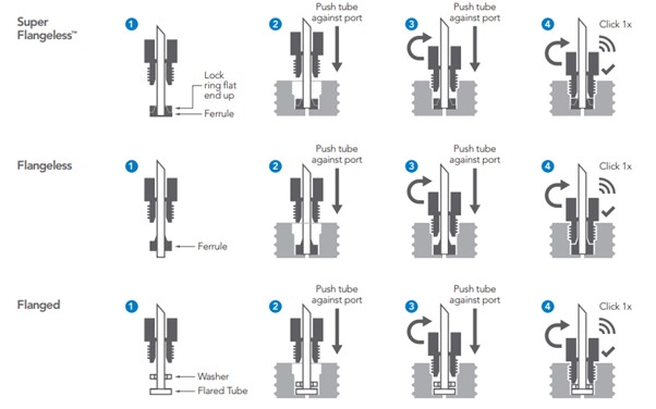 IDEX사 Super Flangeless, Flangeless 타입의 페럴과 호환 가능합니다.