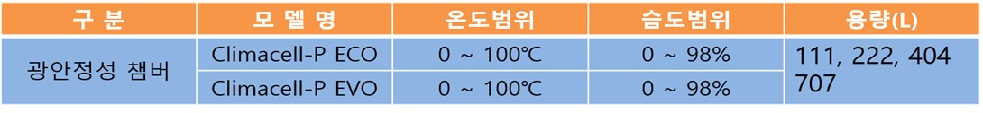 • 광트레이 및 광센서를 탈부착 할 수 있어 평상시에는 일반 안정성챔버로 사용 가능