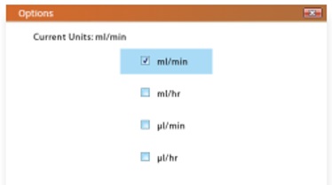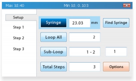 모든 어플리케이션에 필요한 첫번째 단계는 사용하실 주사기의 내경 선택 입니다.