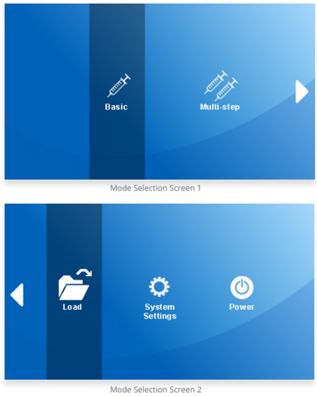 Fusion 시리즈는 펌프의 설정을 위해 직관적 그래픽 사용자 인터페이스(GUI)와 함께 full glas LCD터치 스크린을 사용합니다.