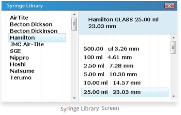 라이브러리에는 주사기 제조업체와 주사기의 정보가 저장되어 있습니다.
