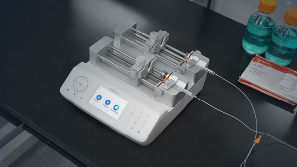 Syringe pump 는 정밀한 양의 유체를 맥동 없이 점진적으로 전달하는데 사용되는 펌프입니다.