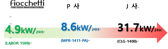 아래 데이터를 보시면 타사 제품 대비 전력소모량이 현저히 낮은 것을 보실 수 있습니다.