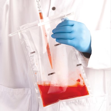 스토마커를 이용해 균질화한 샘플의 고형물은 걸러내고 액체만 사용하기 위해 필터가 있는 멸균백, 멸균백 상단 끝에 철사가 감겨있는 멸균백, 1 kg 이상의 샘플링을 위한 대용량 샘플백 등 다양한 종류의 샘플백을 보유하고 있으니 용도에 맞게 선택하실 수 있습니다.