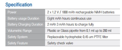 많은 양을 피펫팅 할수 있는 장점을 가지고 있으며, 유리 피펫 또는 일회용 피펫을 끼워서 버튼을 눌러주면 누르는 강도에 따라 척척 용액을 펌핑하고 분주까지 쉽게 할 수 있습니다.