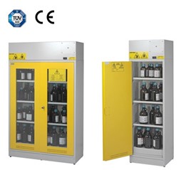 국내 유해화학물질 관련 법규에 따르면, 안전 캐비닛은 화재 발생시 15분을 버틸 수 있어야 하며 강화된 화관법 중 13조, 15조에는 유해화학물질의 종류가 다른 경우 혼합하여 보관, 저장을 금지하고 있습니다.