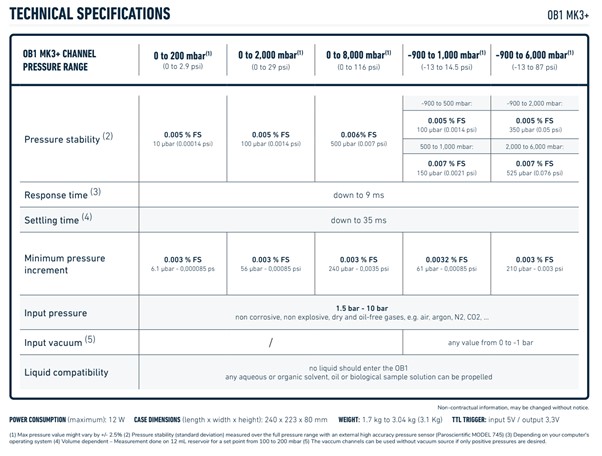 데이터에서 보시듯 OB1은 경쟁 제품이나 정밀한 시린지 펌프에 비해 반응성이나 제어민감도가 우수합니다. 이러한 OB1의 우수한 성능은 피에조일렉트릭 기술을 통하여 가능한데요 압력 컨트롤러중 OB1만이 피에조 방식의 레귤레이터를 사용합니다.