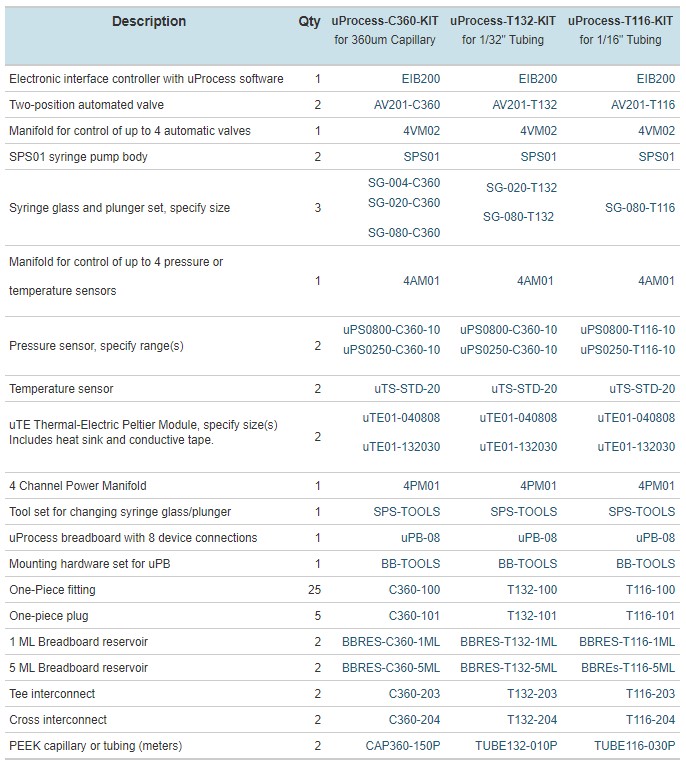 uProcess 미세 유체 자동화 제품과 breadboard 기반의 미세 유체 구성 요소를 제작하는