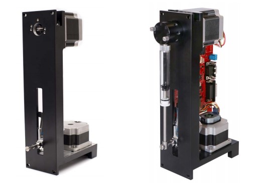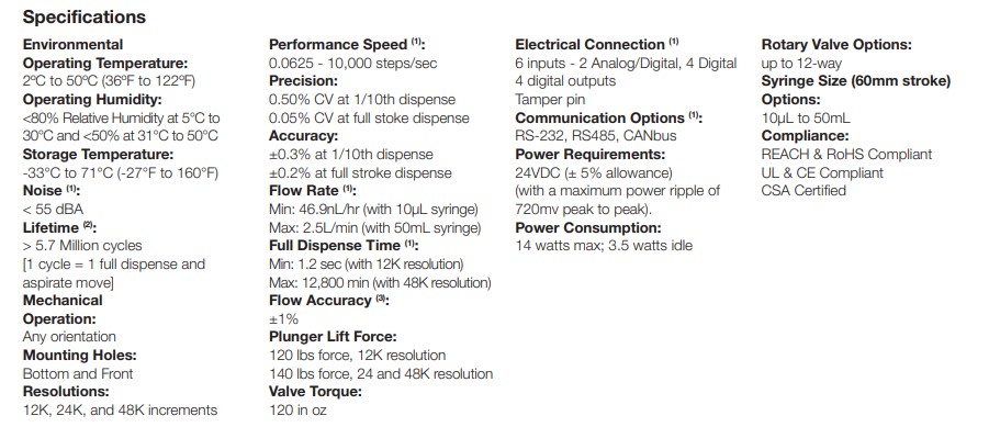 - 정밀한 스텝 모터와 리드 스크류를 통해 구동되는 60mm 의 시린지 스트로크를 가지고 있습니다.
