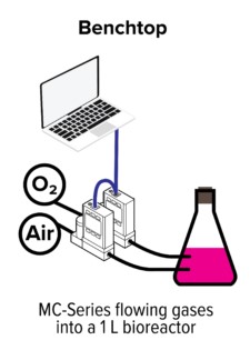 alicat의 제품은 재 보정의 필요 없이 모든 가스 또는 혼합가스에 대한 유량 범위를 충족함으로 Cell lines, seed train 을 사용한 실험의 유연성이나 무결성을 보장합니다. 또한 제품의 컴팩트한 사이즈와 별도의 컨트롤러가 필요 없는 장점으로 인해 벤치 탑 공간을 절약합니다.